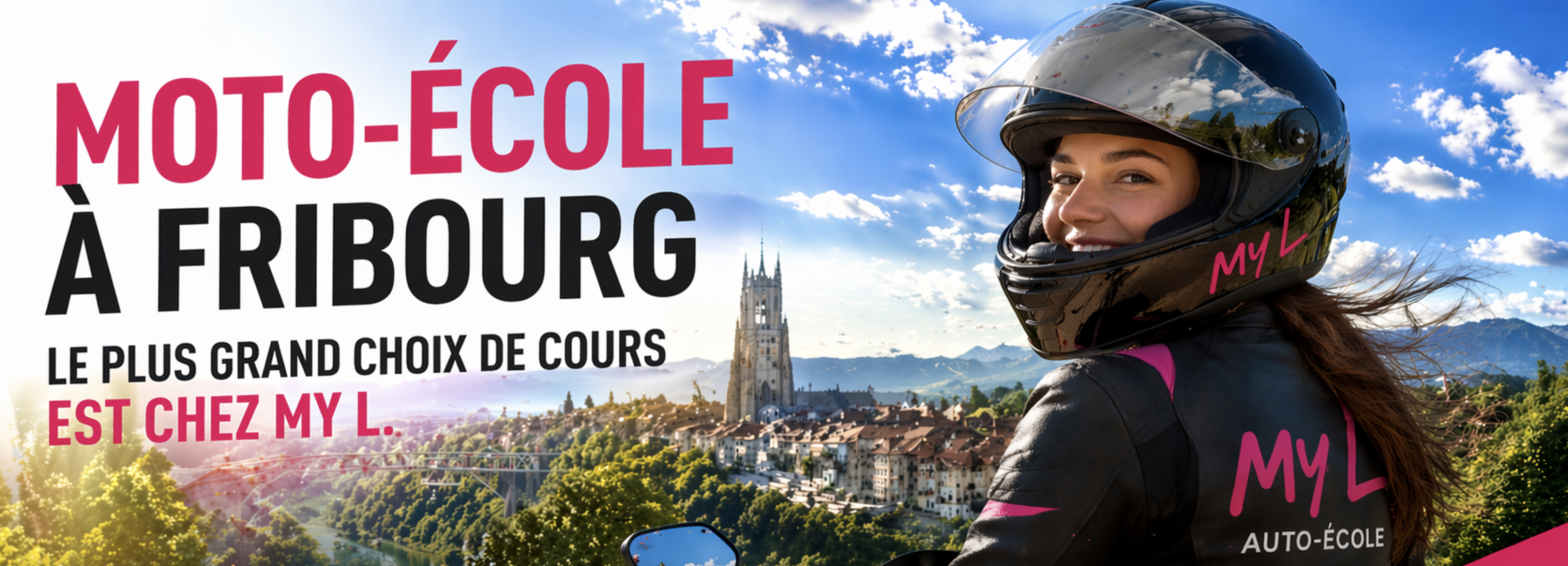 MY L, auto-école et moto-école de référence à Fribourg, t’accompagne dans toutes les étapes du permis de conduire. Tu peux commencer par les premiers secours, bénéficier ensuite d’une aide théorie offerte chez MY L, poursuivre avec la sensibilisation, puis réserver tes cours de conduite voiture ou moto. Cette page d’accueil te permet d’aller directement à l’essentiel. Les pages dédiées te donnent ensuite tous les détails utiles, les tarifs, les liens de réservation et les FAQ.
