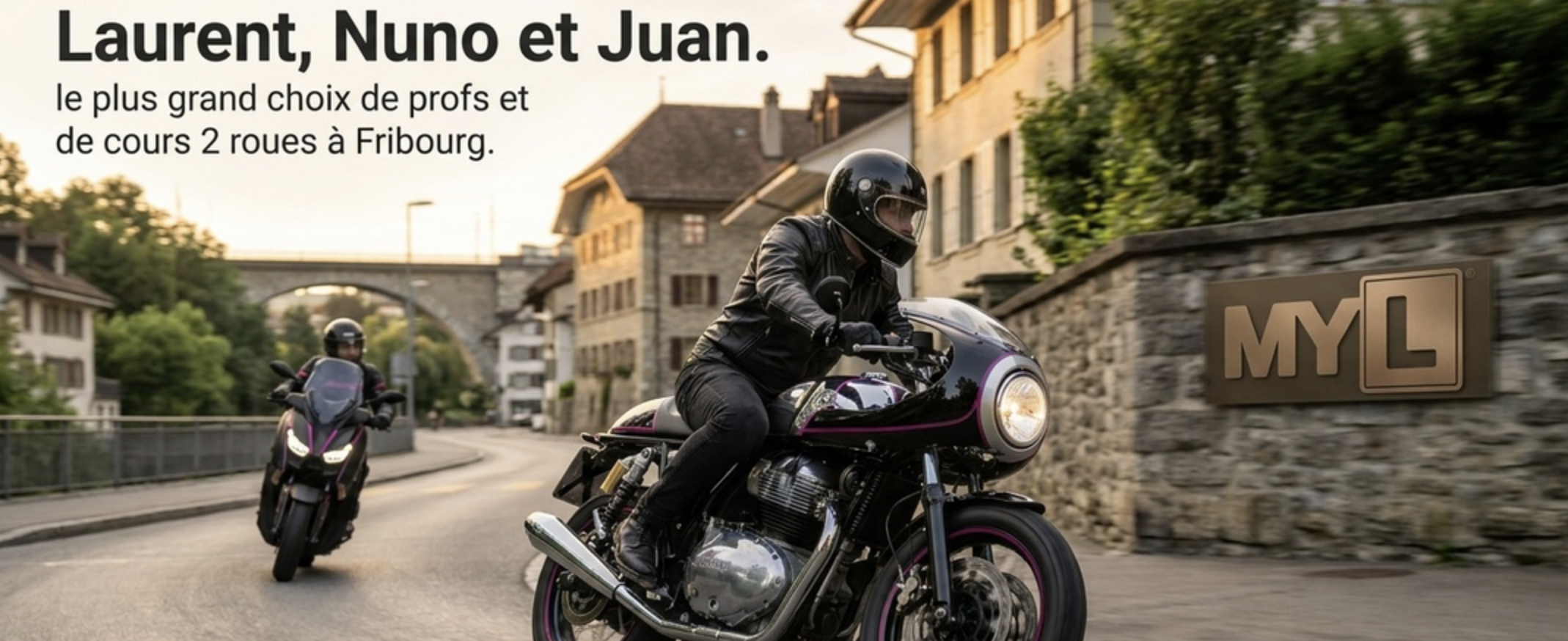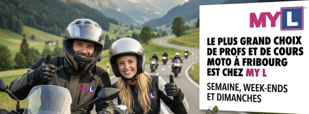 Cours obligatoires moto avec une disponibilité unique à Fribourg. Oui, Chez MY L nous dispensons des cours la semaine, les samedis, et mêmes les dimanches ! Qui dit mieux ?